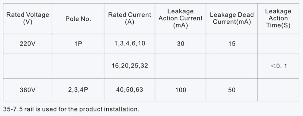 ♦ مناسبة لدوائر شبكة التوزيع مع AC 50Hz ، الجهد العاملة المصنفة من 400 فولت وأقل ، والتيار المصنفة 63A وأقل ؛