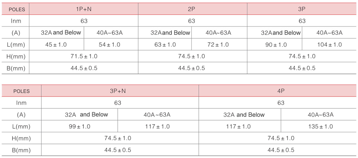 ♦ ICU سعة كسر المقدرة (KA): 4 (6A ~ 40a ، النوع C) ، 3 (50a ، 63a ، النوع C) ، 4.5 (6a ~ 63a ، النوع D) ؛