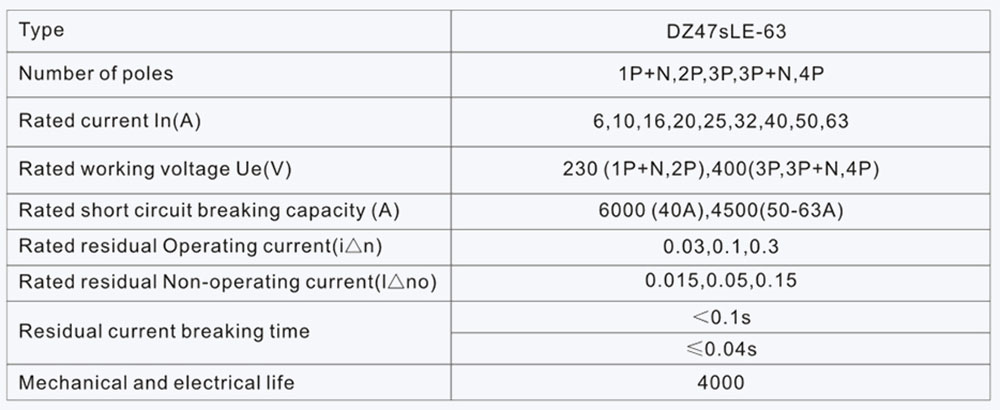 DZ47SLE-63 Series Circuit Circuit Breaker مناسبة لدائرة AC 50Hz/60Hz مع الجهد المصنف حتى 400 فولت وتصنيف تيار يصل إلى 63A. يمكن أن تقطع إمدادات الطاقة الخاطئة على الفور لحماية السلامة الشخصية والمعدات الكهربائية بمناسبة الصدمة الكهربائية الشخصية أو تيار التسرب إلى ما بعد القيمة المقدرة. يمكنه أيضًا حماية الدائرة والحمل الزائد أو الدائرة القصيرة للكهروموتية ، وتستخدم في التغيير النادر والبدء في الدائرة.